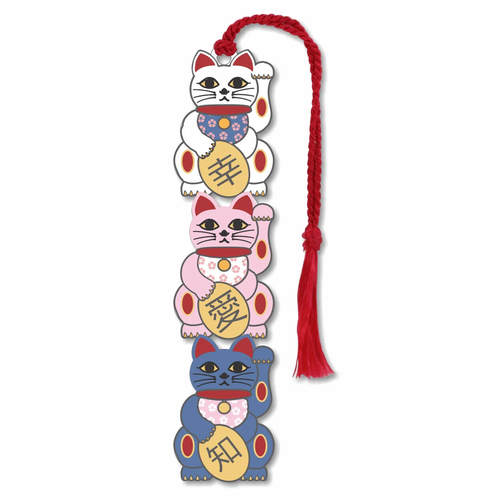 Unit price perThis bookmark features maneki-neko, a Japanese figurine believed to bring good luck to the owner. Different colored cats signify different types of good fortune; the white cat is happiness, the pink is love, and the blue is knowledge.