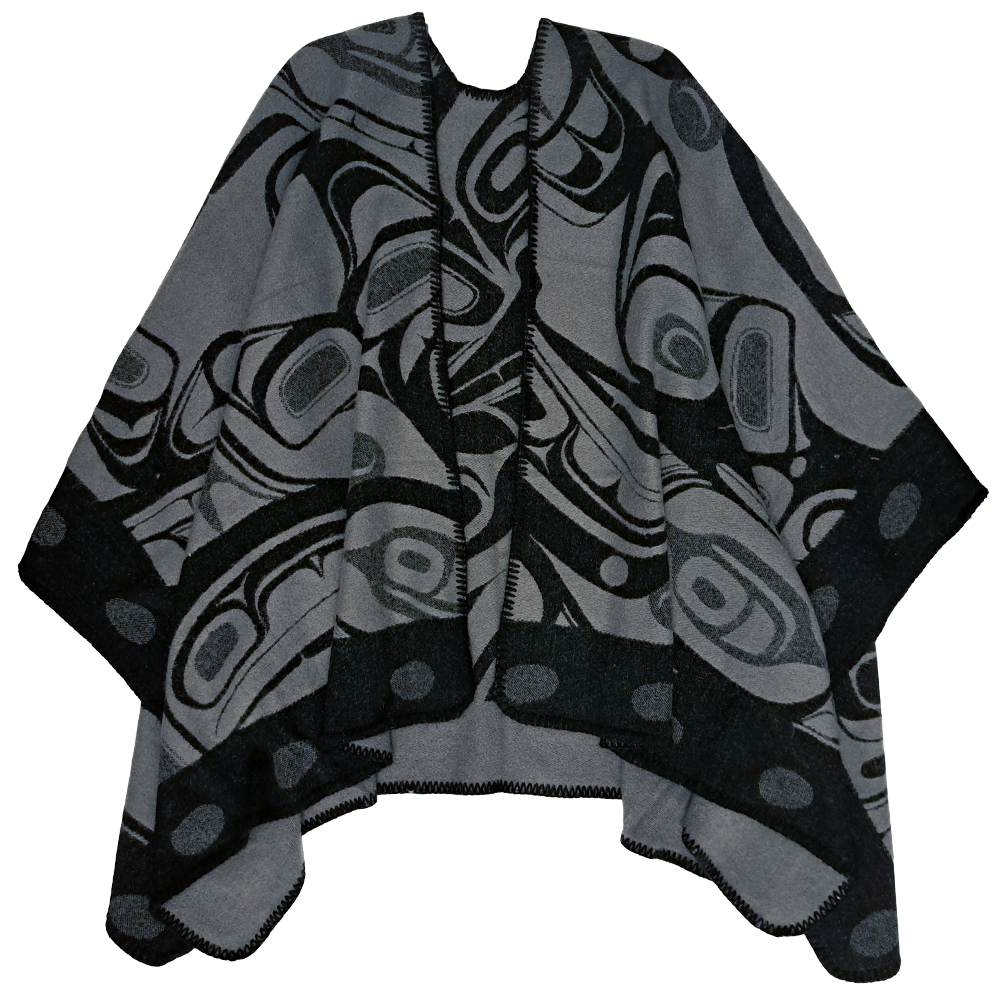Perfect for layering and easy to pack, this exceptionally soft and warm cape features a design by Nuxalk and Nuu-chah-nulth artist Kelly Robinson.