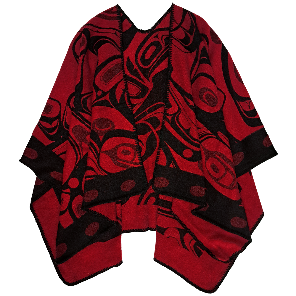 Perfect for layering and easy to pack, this exceptionally soft and warm cape features a design by Nuxalk and Nuu-chah-nulth artist Kelly Robinson.
