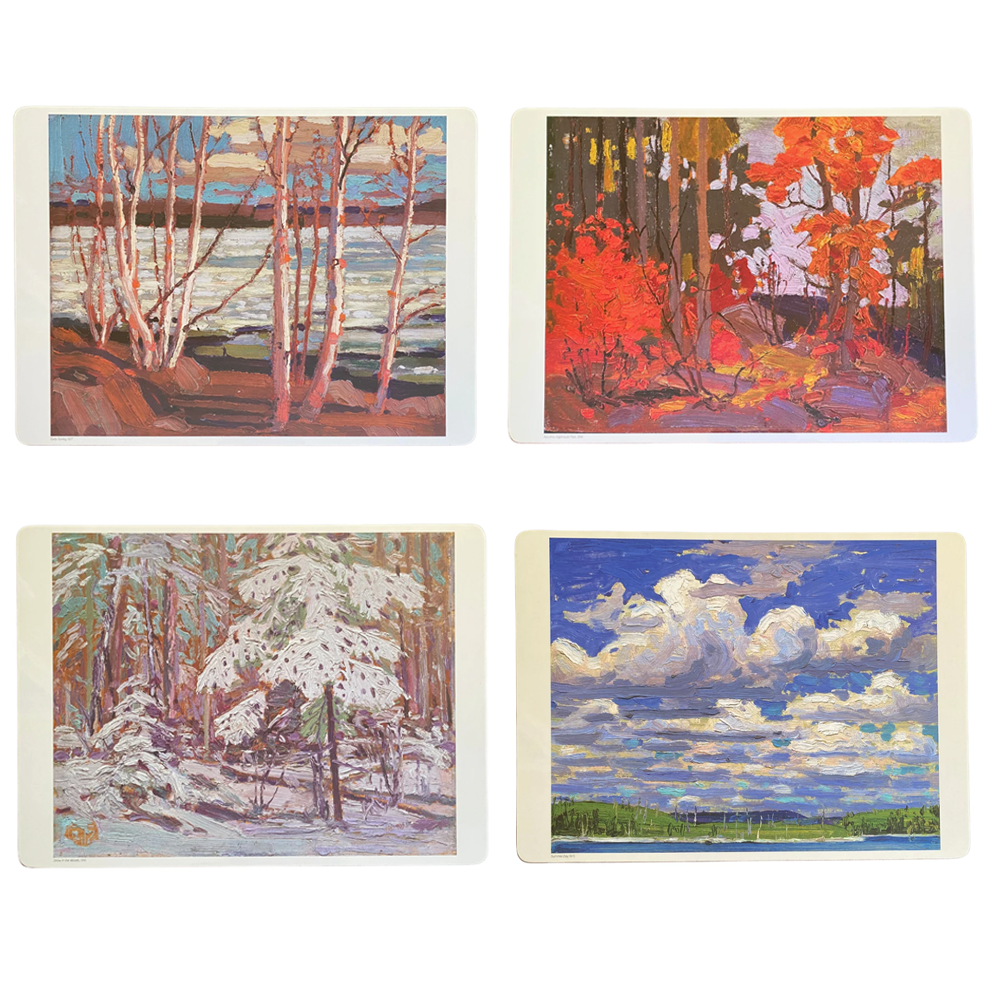 Unit price perThese placemats feature a selection of paintings by Tom Thomson (1877–1917) from the Art Gallery of Ontario and the McMichael Canadian Art Collection; Early Spring (1917), Autumn (1916), Snow in the Woods (1916), and Summer Day (1915).