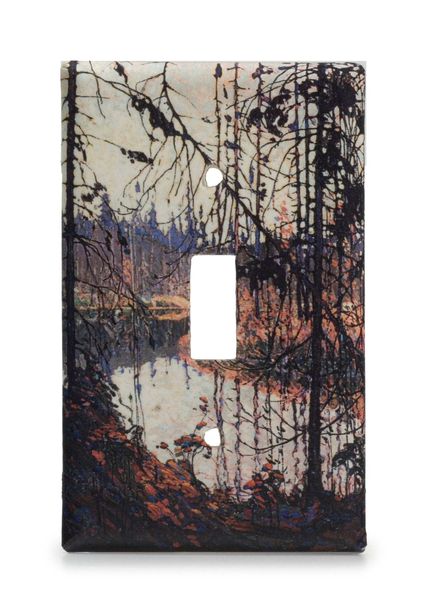 This switch plate features a detail from Tom Thomson's painting Northern River (1915) in the collection of the National Gallery of Canada.