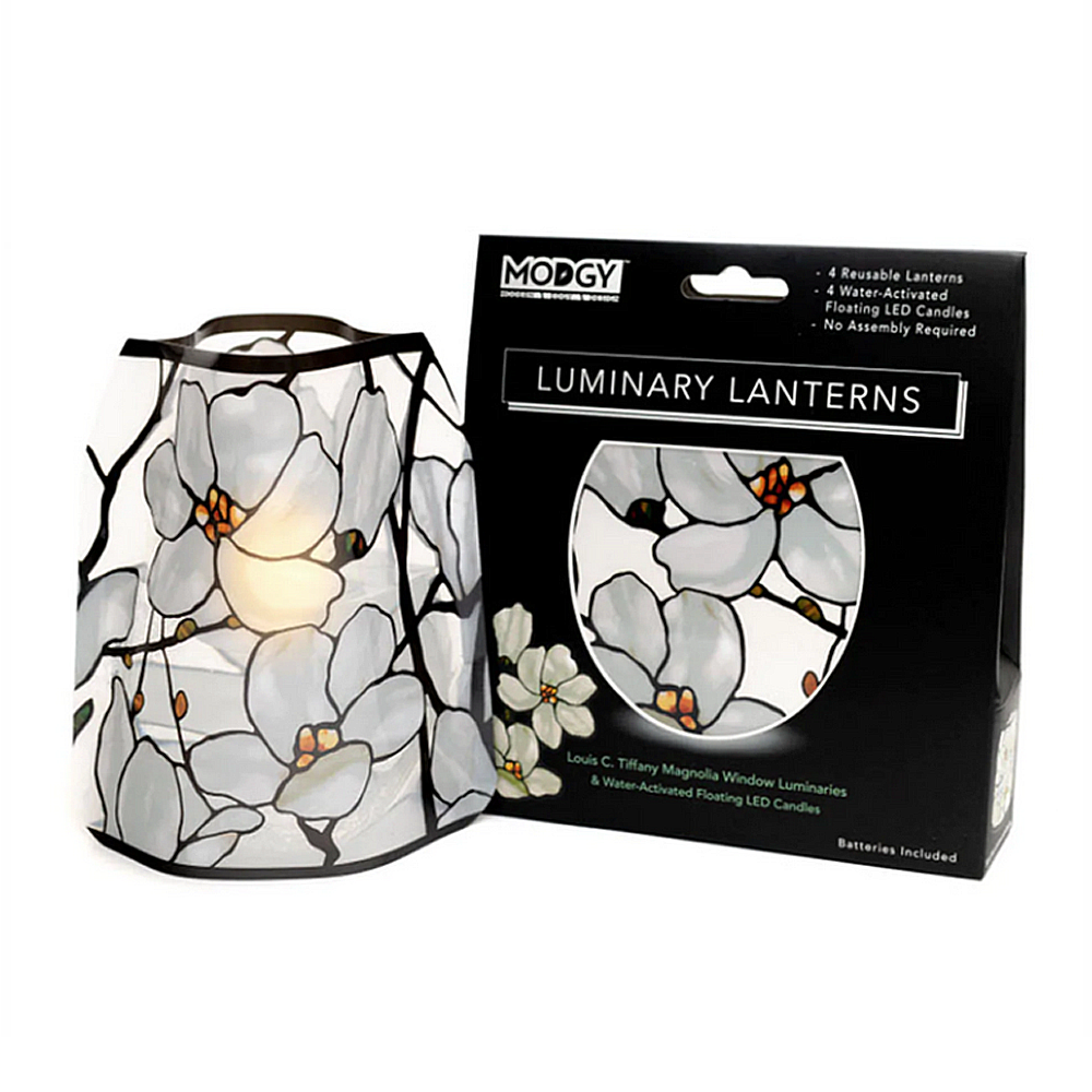 Unit price perThese flameless and reusable luminaries, ideal for indoor and outdoor use, feature a detail from magnolia window panels (c. 1885) by Louis Comfort Tiffany (1848–1933). An elegant centerpiece for everyday living areas, as well as for dinner and garden parties, special events and weddings, the lanterns are shatterproof, lightweight and easy to store. Simply pour water into each luminary, place the candles inside and enjoy the ambiance!
