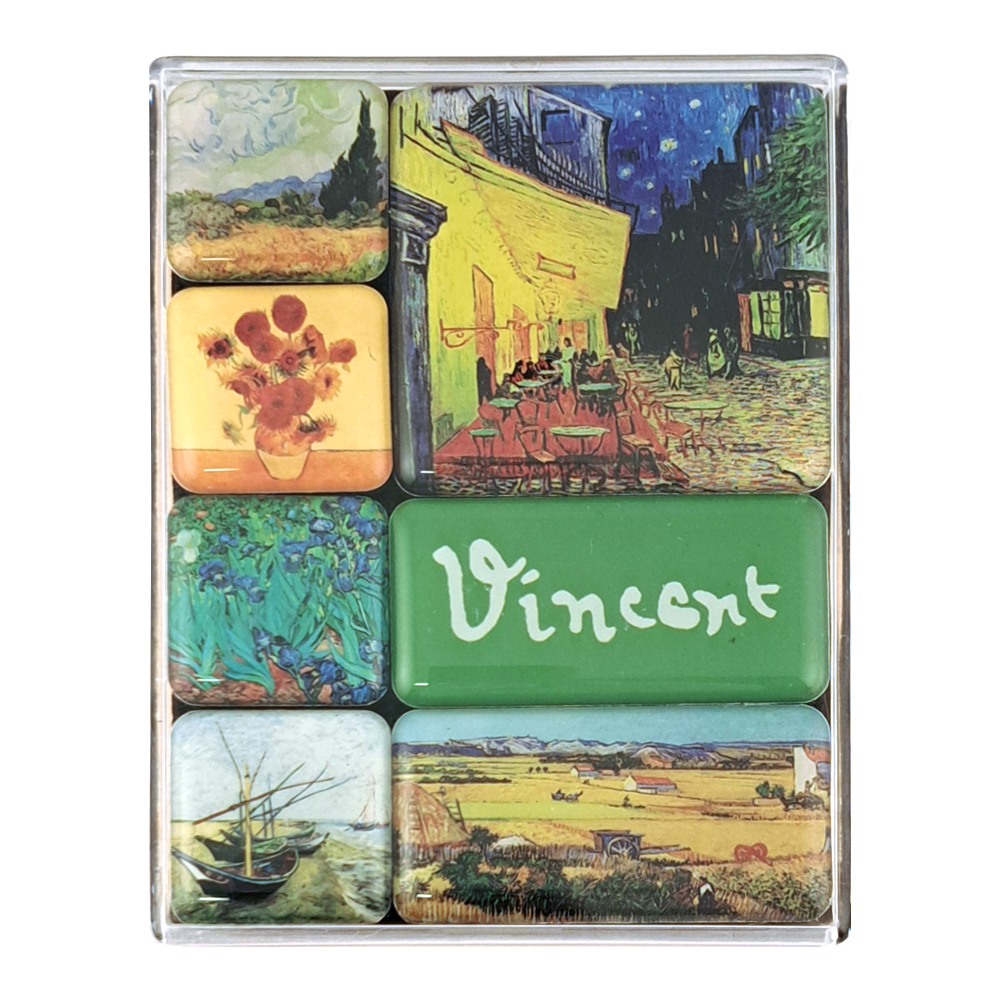 Inspired by the art of Vincent van Gogh (1853–1890), this set of seven irresistible mini magnets is presented in a giftable transparent box.