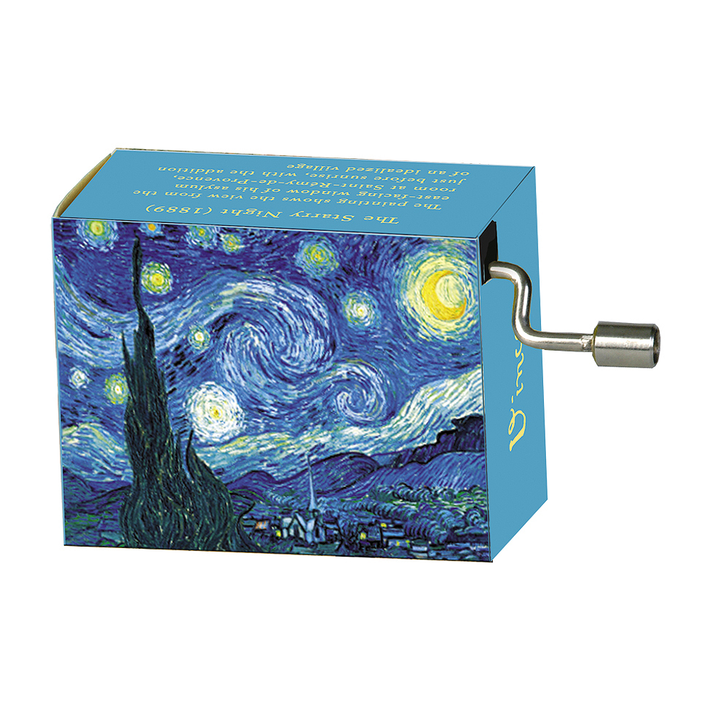 Add music to your day with this little music box. Turn the handle to play the melody again and again! The box features the painting The Starry Night (1889) by Vincent van Gogh (1853–1890).