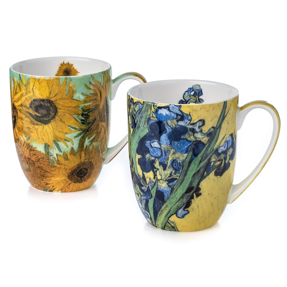 Unit price perThese fine bone china mugs depict details from the paintings Irises (1890) and Vase with Twelve Sunflowers (c. 1888) by Vincent van Gogh (1853–1890).
