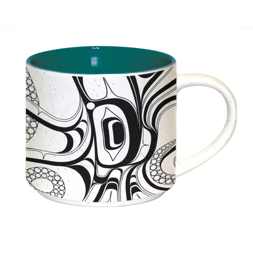 Unit price perThis ceramic mug, with a speckled matte exterior and a glossy, coloured interior, features an artwork by Haida artist Ernest Swanson.