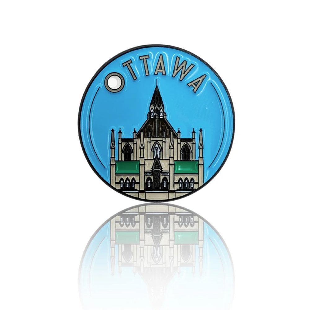 Accessorize with this lapel pin featuring the iconic architecture of the Parliament of Canada. A perfect keepsake for history enthusiasts, travellers, and collectors.