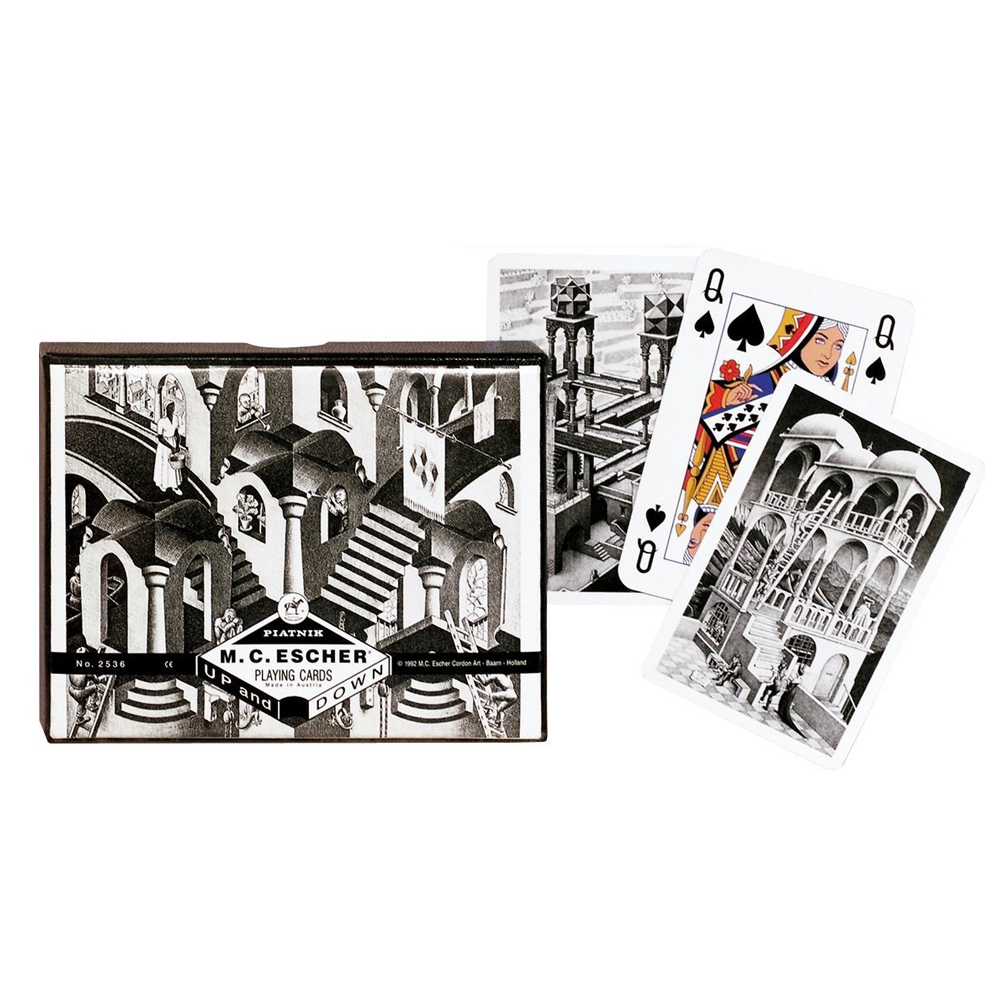 Unit price perThis set includes two decks of cards featuring details from the paintings Waterfall (1961) and Belvedere (1958) by M.C. Escher (1898–1972).