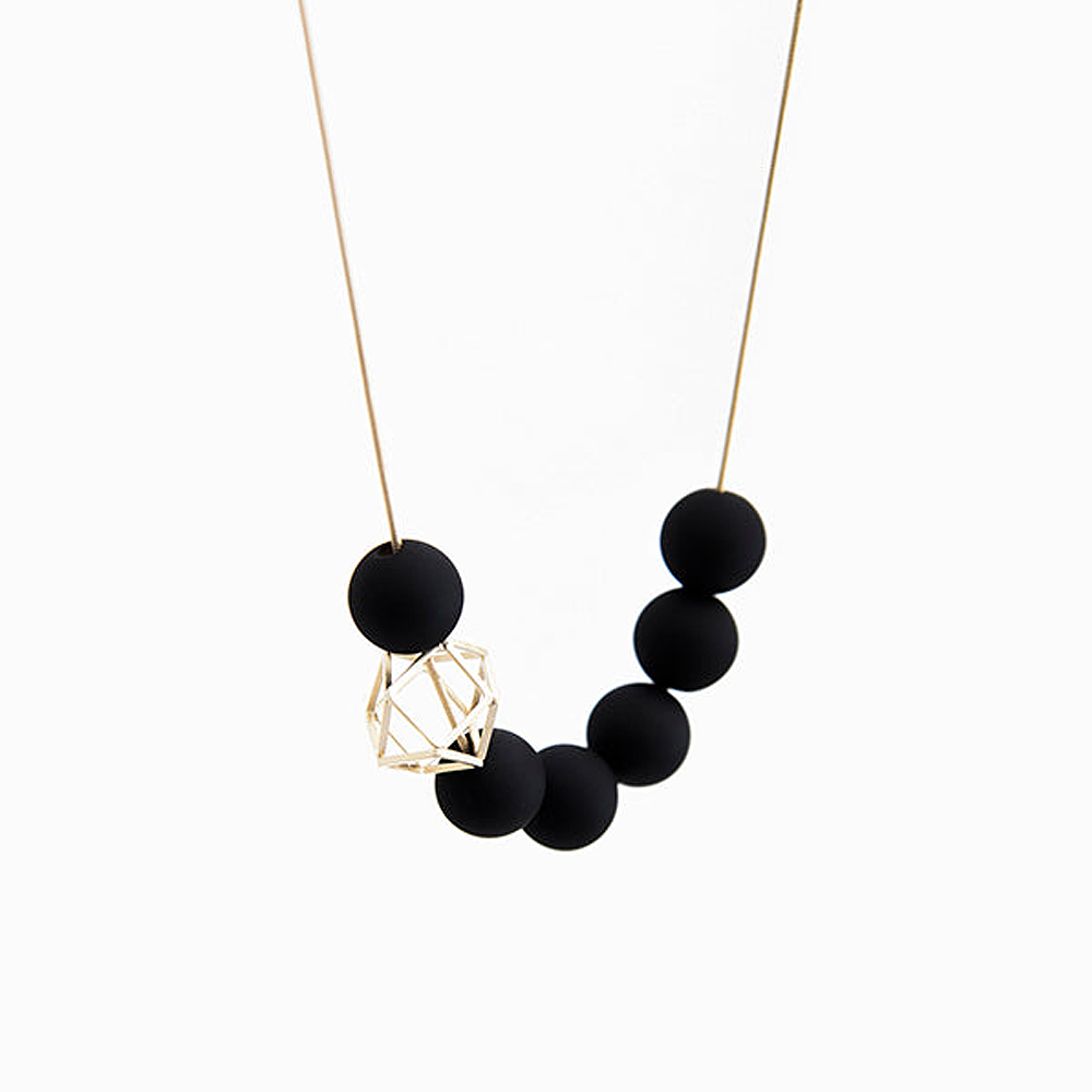 Vanassa Chan's jewellery reflects her interest in design and architecture. This short necklace is composed of a delicate hexagonal charm surrounded by black acrylic orbs.