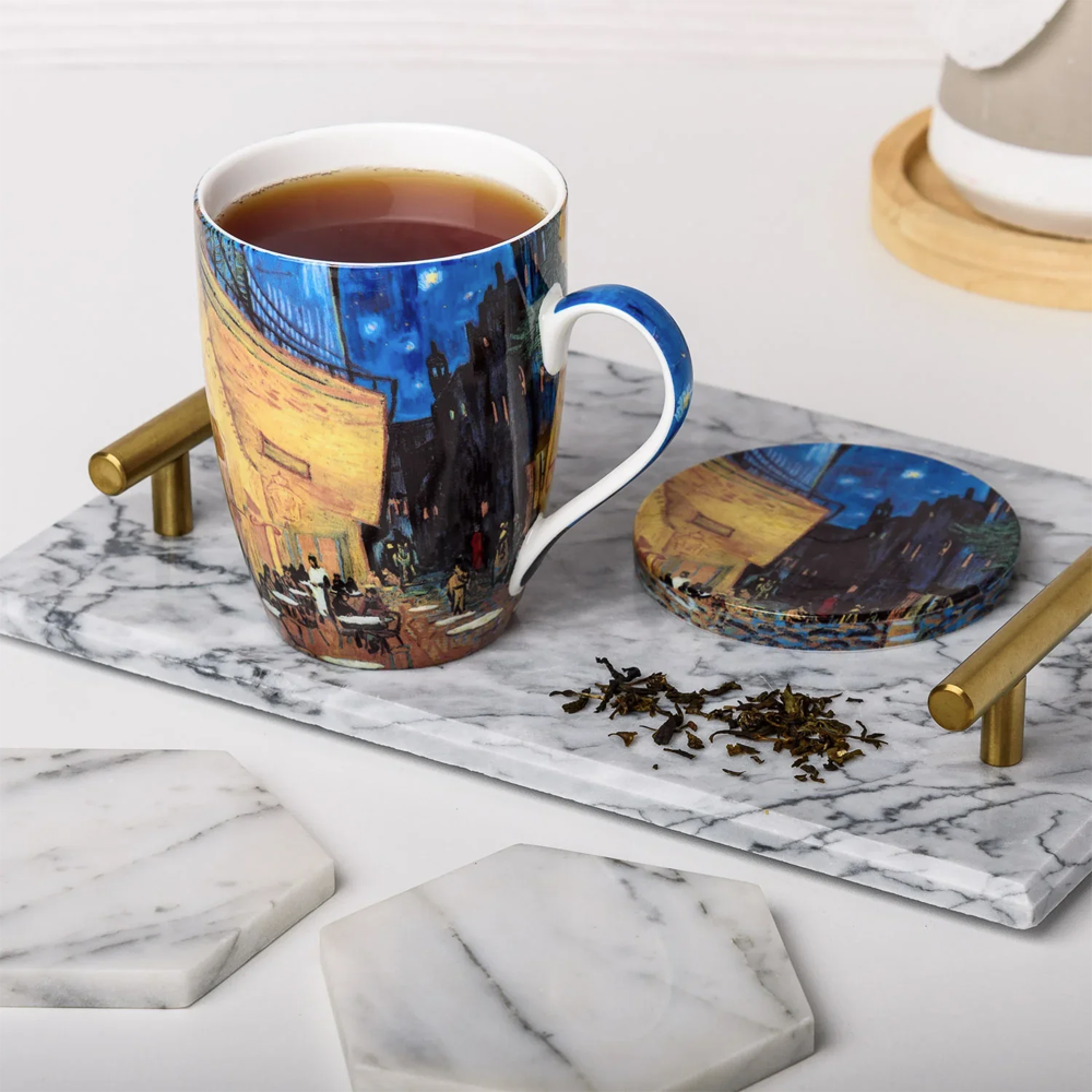Unit price perThis fine bone china teacup depicts a detail from the painting Terrace of a Café at Night (Place du Forum) (1888) by Vincent van Gogh (1853–1890). This set includes a teacup, an infuser and a lid.