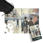 This 300 piece puzzle is adapted from the painting Paris Street; Rainy Day (1877) by Gustave Caillebotte (1848–1894).