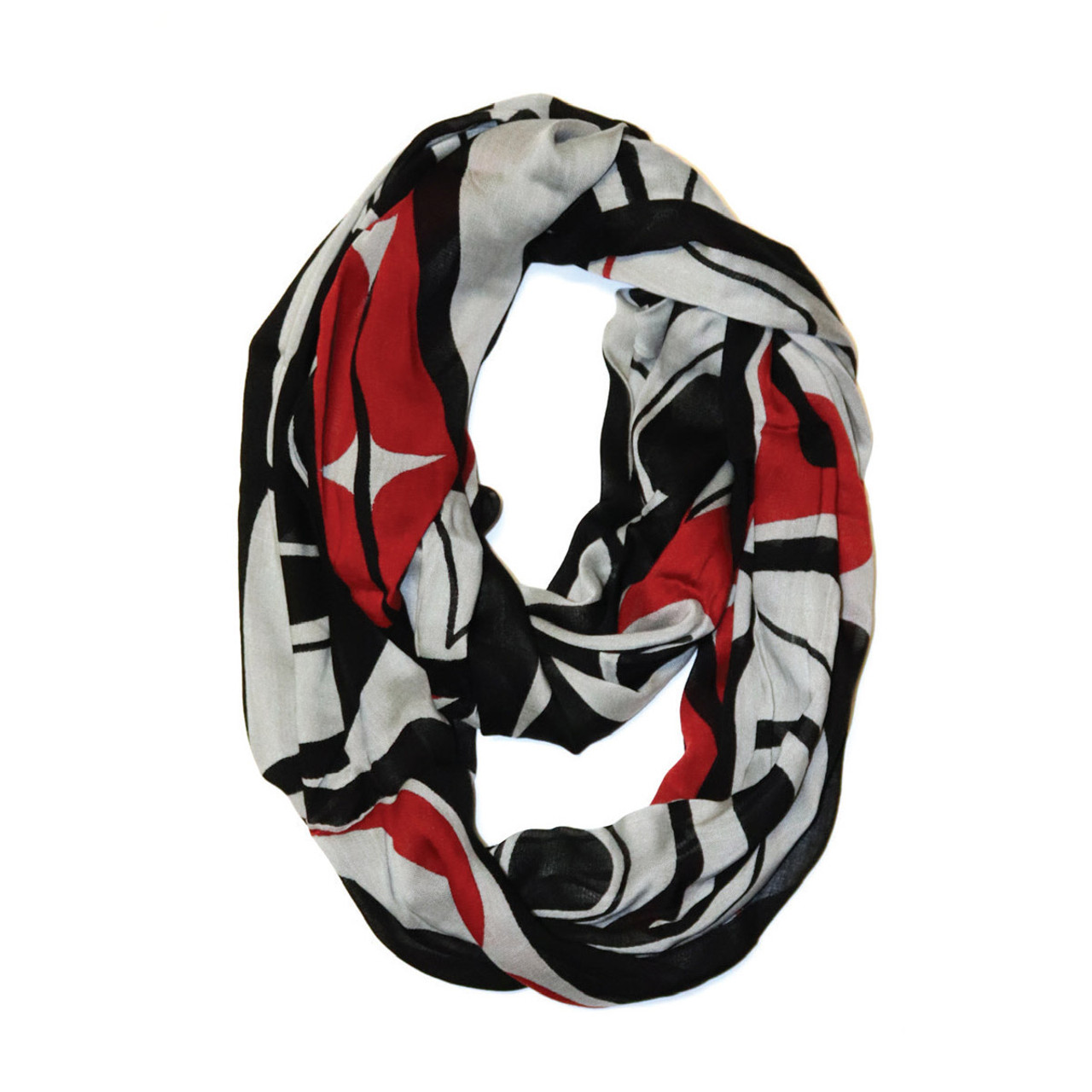 An accessory for all occasions, this versatile, easy to wear circle scarf features a design by Tsimshian artist Morgan Asoyuf.