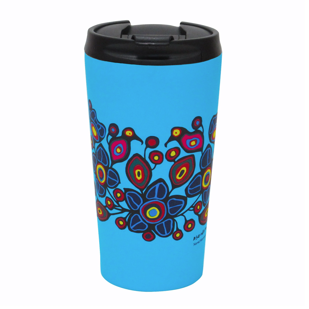 Unit price perThis stainless steel, double-walled travel mug features the design Flowers and Birds by Anishnaabe (Ojibwa) artist Norval Morrisseau (1932–2007). Insulates hot beverages up to 5 hours and cold beverages up to 12 hours.
