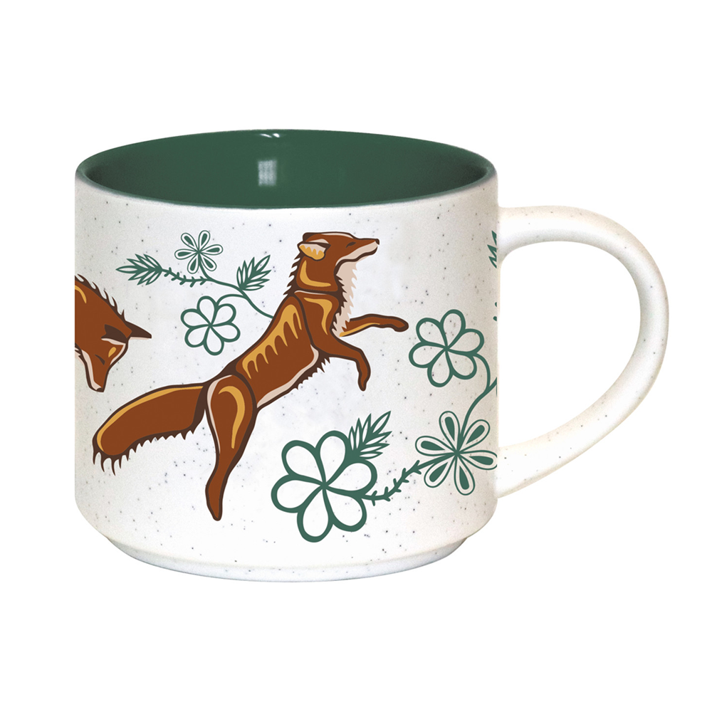Unit price perThis ceramic mug, with a speckled matte exterior and a glossy, coloured interior, features an artwork by Storm Angeconeb, a self-taught Indigenous artist from Lac Seul First Nation.
