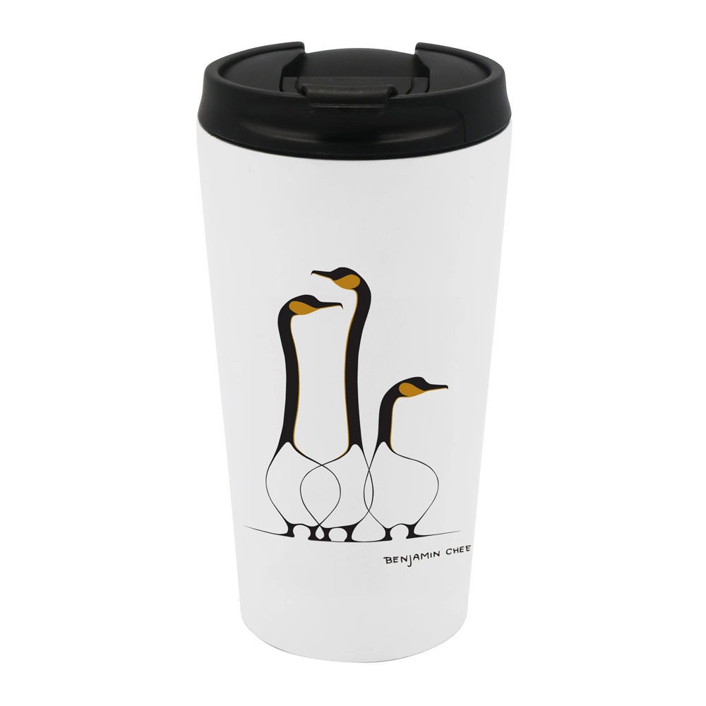 This stainless steel, double-walled travel mug features a detail from the painting Friends by Ojibwa artist Benjamin Chee Chee (1944–1977). Insulates hot beverages up to 5 hours and cold beverages up to 12 hours.