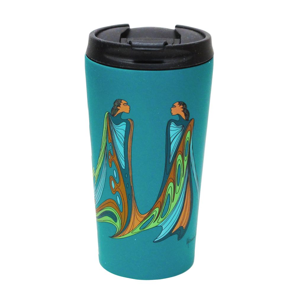 Unit price perThis stainless steel, double-walled travel mug features a detail from the painting Friends by Sioux artist Maxine Noel. Insulates hot beverages up to 5 hours and cold beverages up to 12 hours.