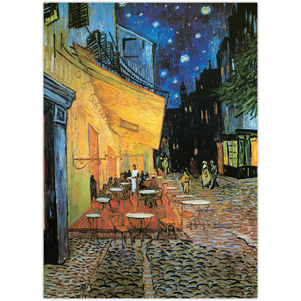 This poster features the painting Terrace of a Café at Night (1888) by Vincent van Gogh (1853–1890).