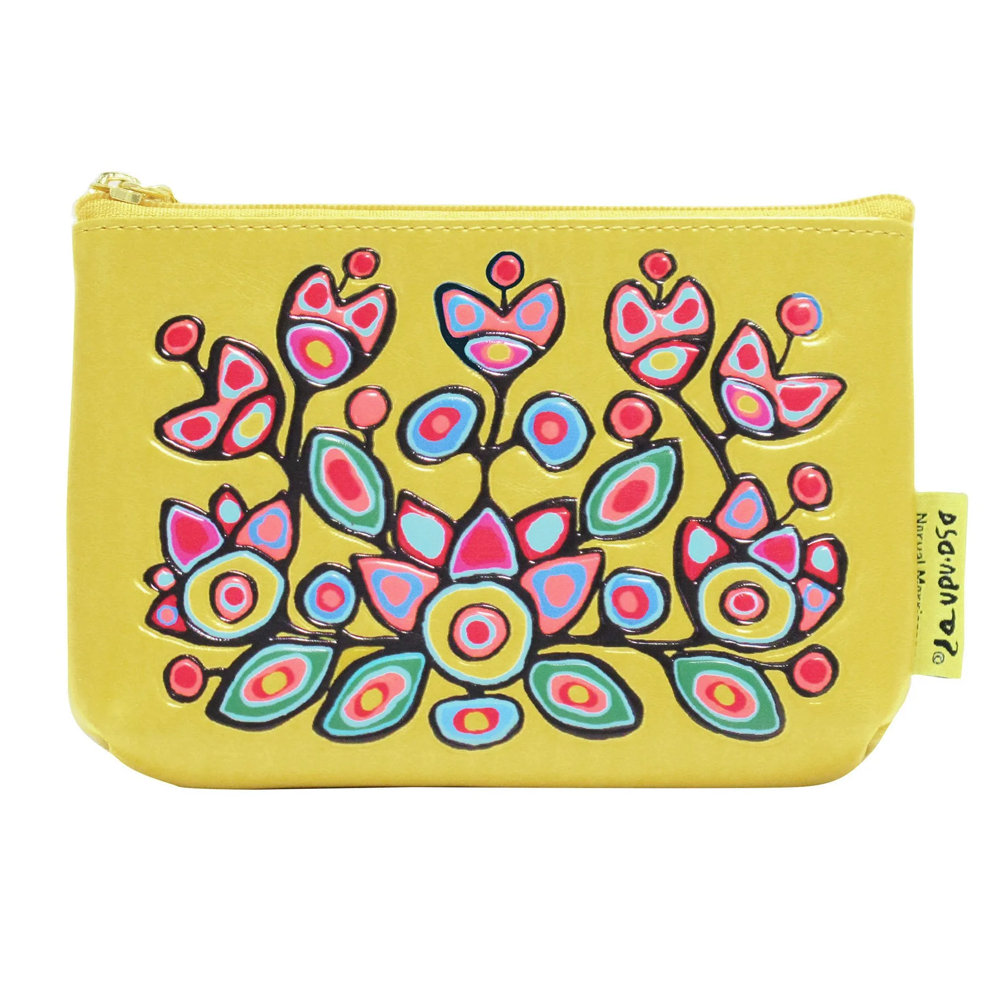 Unit price perStow your essentials in a bright, floral landscape. This coin purse features a detail from the painting Floral on Yellow by Anishinaabe (Ojibwa) artist Norval Morrisseau (1932–2007).