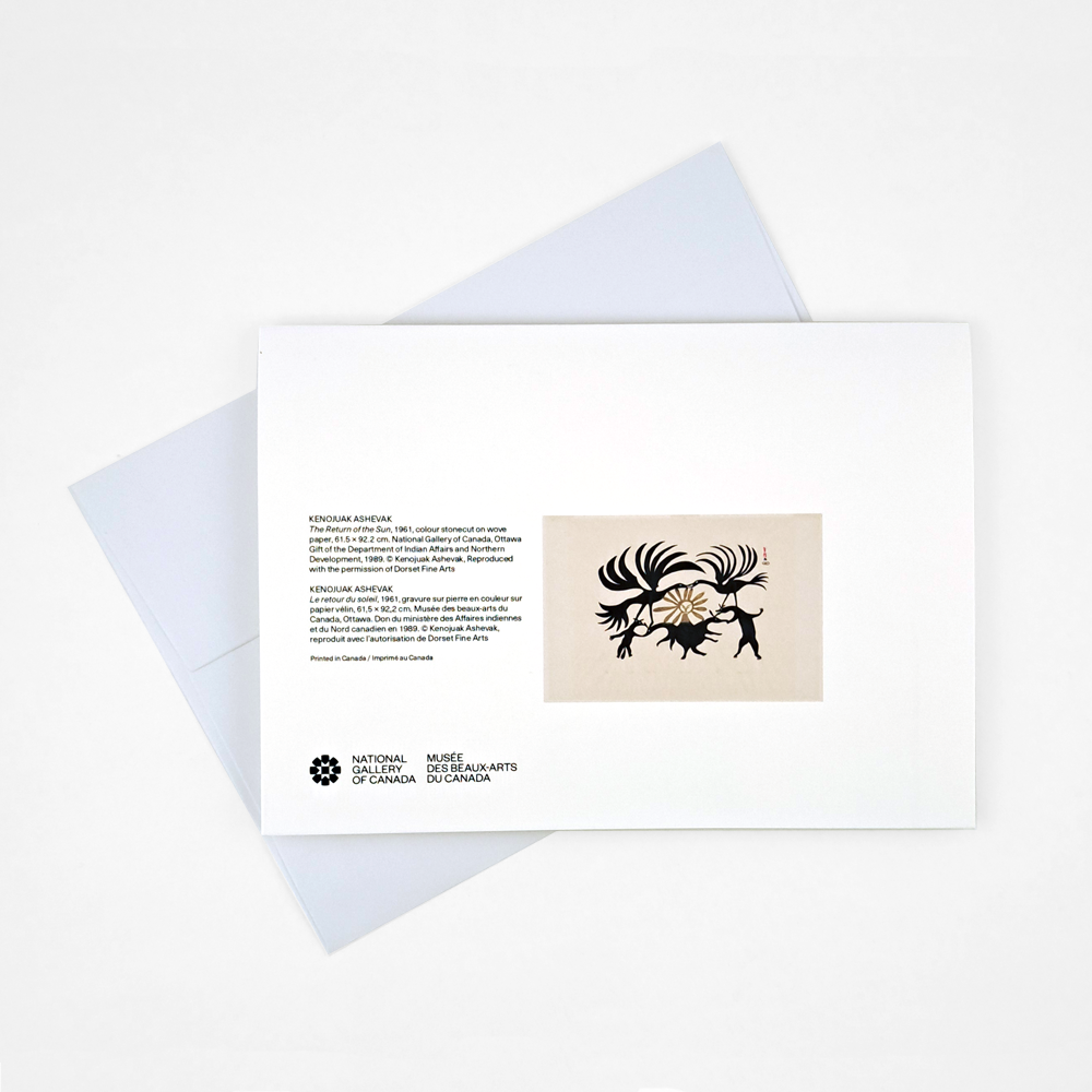 This notecard features a detail of the artwork The Return of the Sun (1961) by Kenojuak Ashevak (1927–2013).