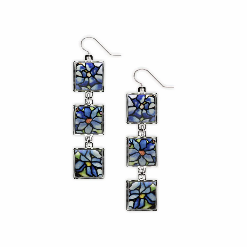 Ces boucles d’oreilles sont inspirées de l'abat-jour clématite conçu par Clara Driscoll (1861–1944) pour Tiffany Studios.