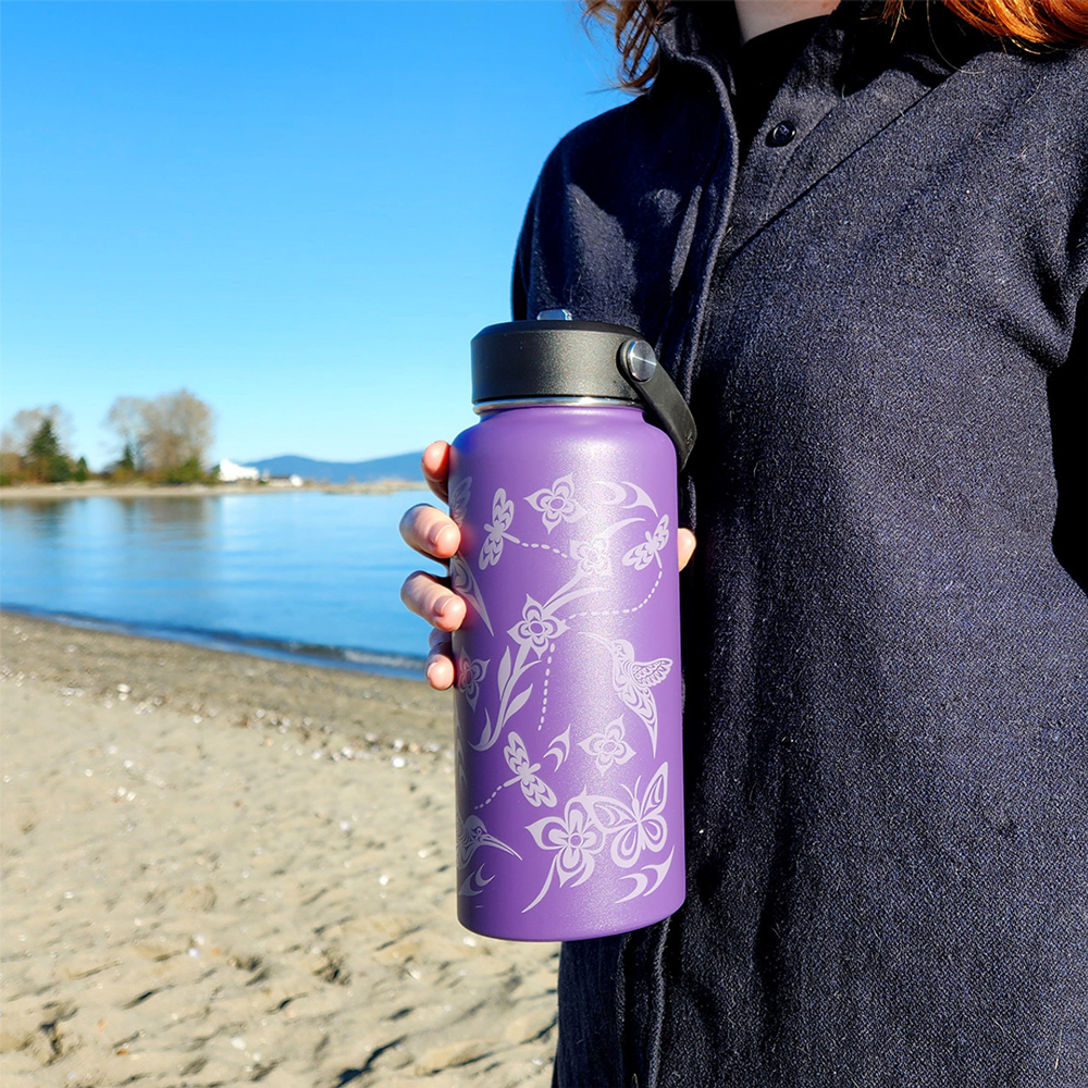 Chaque bouteille est dotée d'une poignée facile à transporter, d'un bec verseur et d'une superbe œuvre d'art autochtone qui éblouira les spectateurs lors de vos aventures et activités quotidiennes.