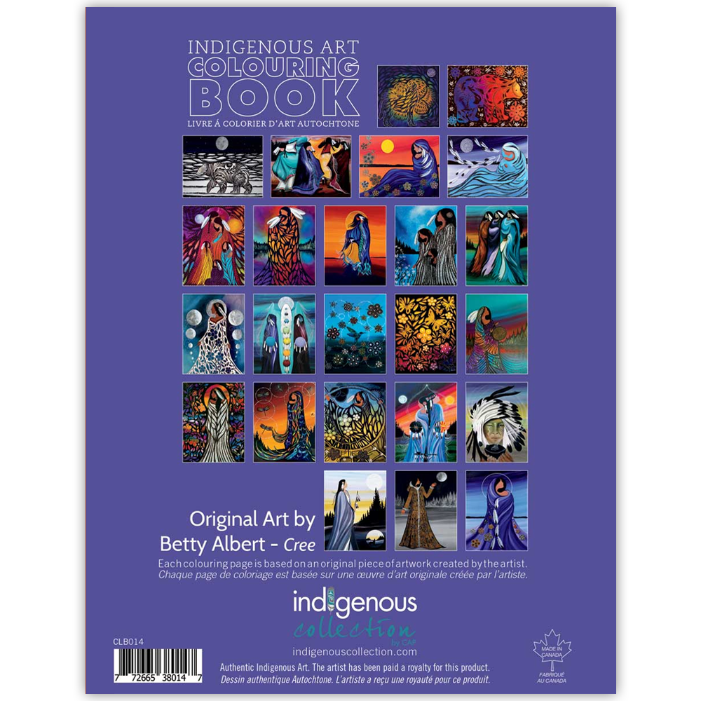 Prix unitaire parChacune des 28 pages de ce livre de coloriage présente le contour d’une œuvre d’art originale de l’artiste cri Betty Albert. La quatrième de couverture reproduit les œuvres originales à titre de référence.